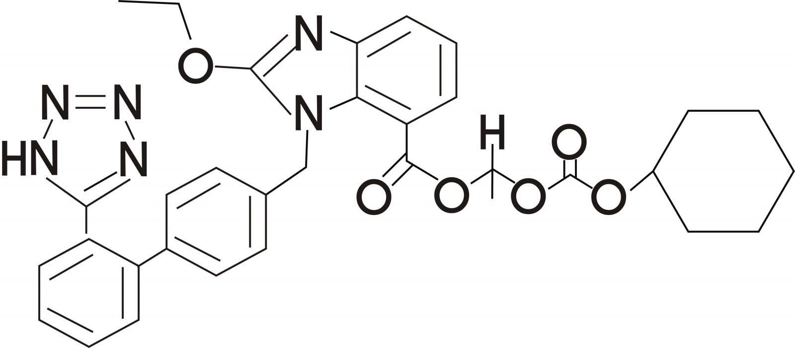 化學名稱:(±)-1H-苯并咪唑-7-羧酸-2-乙氧基-1-[[2-(1H-四氮-5-基)[1,1-二苯]-4-基]甲基]-1-[[(環(huán)己基氧基)羰基]氧基]乙酯